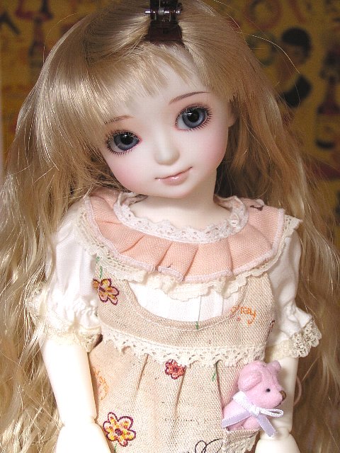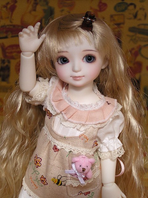 フリフリワンピにエプロン。 ポケットのベアちゃんは手足が動かせます♪
