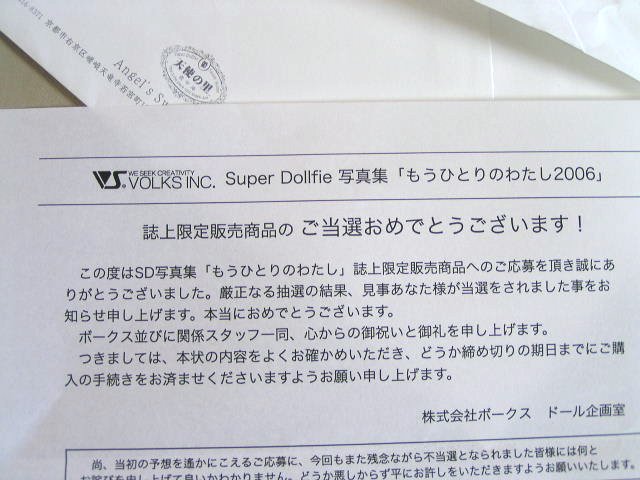 当選通知だったのでした~ てっきりメールで来ると思い込んでたわ~